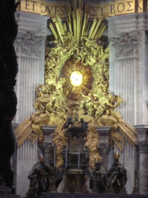 L’après-midi a été consacré à la visite de la basilique Saint-Pierre. Après environ deux heures de queue, nous avons pu pénétrer dans la basilique et voir les merveilles qu’elle renferme. D’abord la Pietà, œuvre de jeunesse du génial toscan, que beaucoup d’élèves réclamaient déjà depuis longtemps. Leur souhait a été pleinement satisfait et ils ont été comblés par la beauté triste et apaisée de la Vierge. La visite du lieu a été rendu difficile par la célébration qui s’y déroulait mais nous avons tout de même pu voir la coupole et les majestueuses statues de la croisée du transept. Lorsque Le Bernin remplacera Michel-Ange au programme du baccalauréat Histoire des Arts, il nous faudra revenir pour les étudier en détail !
