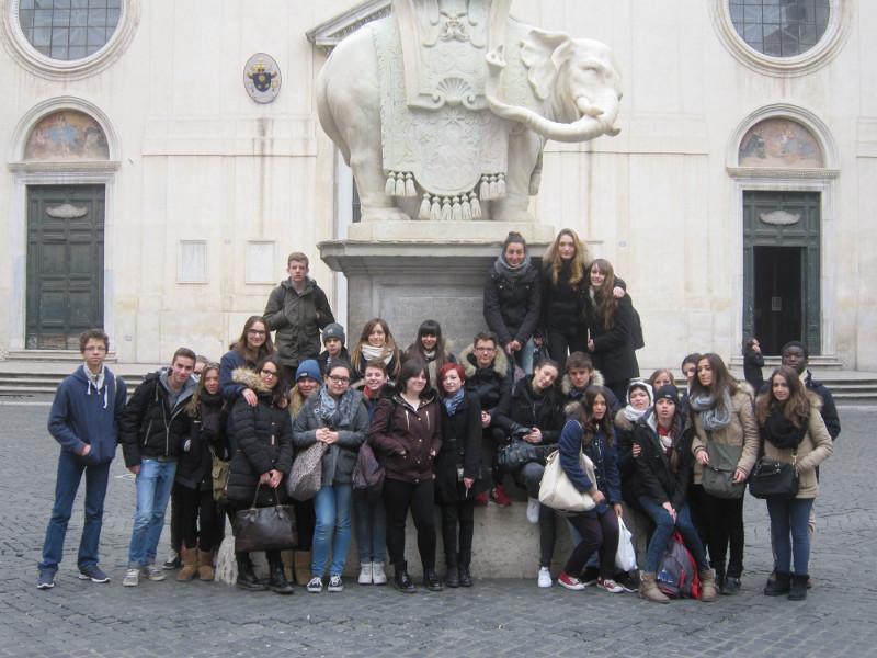 L’heure du repas arrivait et nous nous sommes séparés place Navone après avoir rendu visite à Pasquino, une des célèbres statues parlantes de Rome. La place était presque vide ce qui nous a permis de goûter pleinement la beauté des fontaines du Bernin et de l’église Sant’ Agnese in Agona de Borromini. L’après-midi a été pour nos élèves l’occasion de visiter la ville par eux-mêmes de faire leurs dernières courses pour trouver un souvenir, manger une ultime glace ou essayer une spécialité romaine (la pizza bianca farcie pour quelques-uns m’a-t-on dit…) En montant dans le bus pour gagner l’aéroport, une pluie glaciale battait la ville. La preuve que Rome regrettait aussi notre départ ?